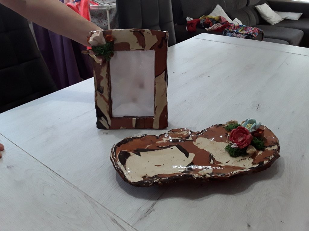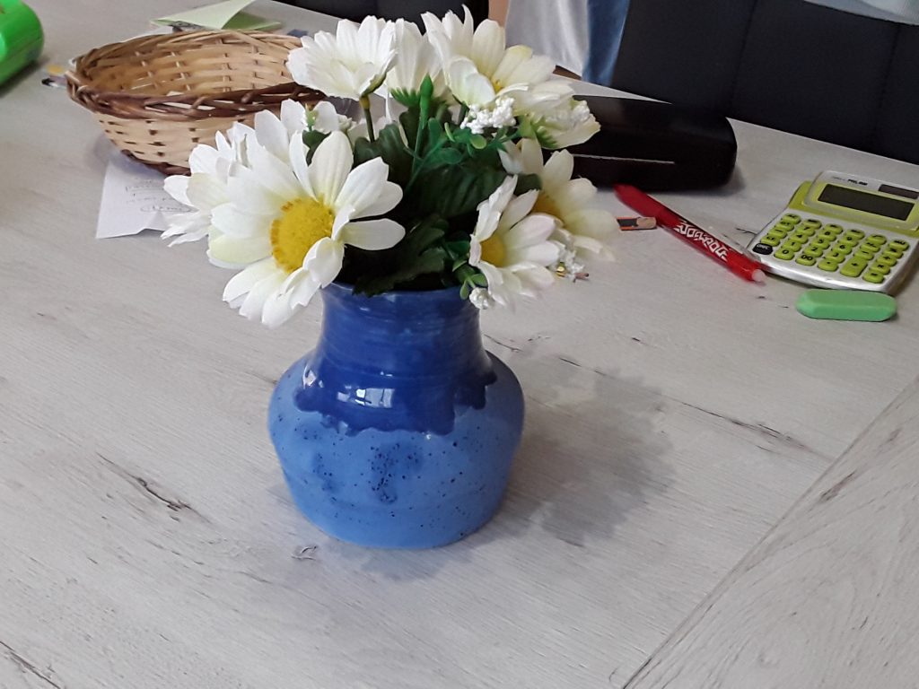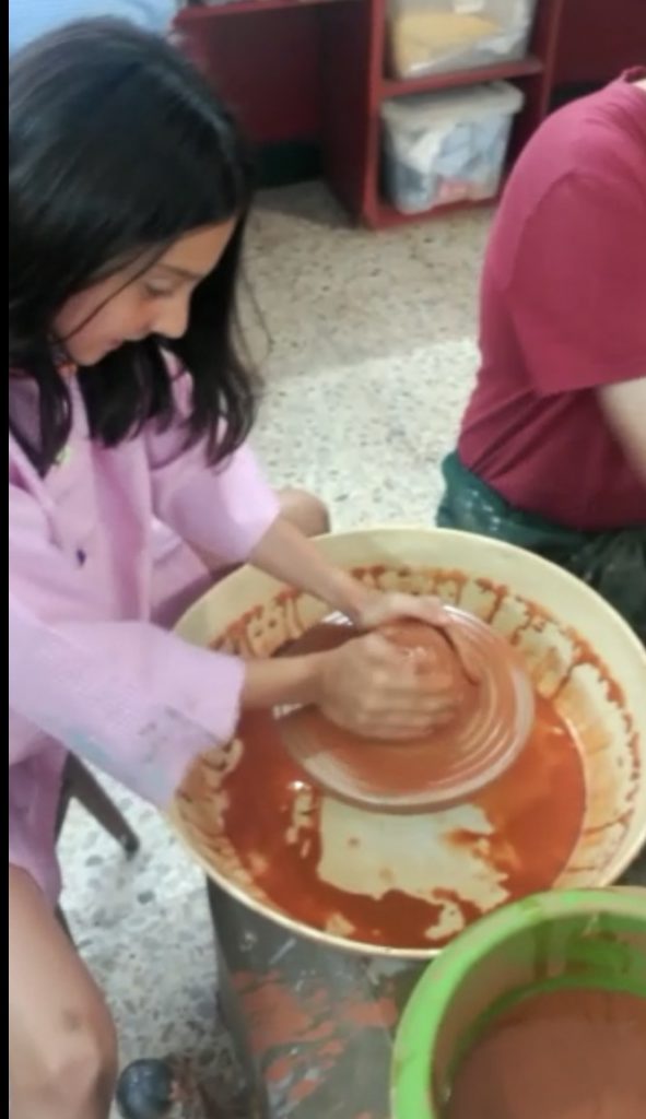 L’horari era de 10h a 12h, dues hores per dibuixar, pintar, fer figures amb fang , etc. Al final de cada classe m’emportava les meves obres a casa. Vaig fer moltes manualitats, que detallo a continuació: Un collar d’un gelat amb una mossegada, que es va convertir en plàstic perquè ho vam posar al microones, un quadre amb perspectiva d’una platja, dibuixos amb ombres utilitzant carbó, una tassa i la casa Batlló amb fang, un bol que ho vam realitzar amb una màquina que es diu: “entorn terrissaire”, amb la qual també vam fer un gerro, un portaespelmes… i moltes coses més.