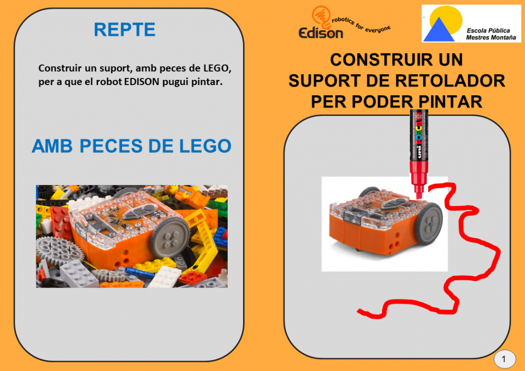 - Catifa EdMat (Descarrega PDF castellà). EdMat es una alfombreta de tamany A1 que conté 6 codis de barres que activen programas pre-instal·lats i un circuit que l’Edison pot seguir.