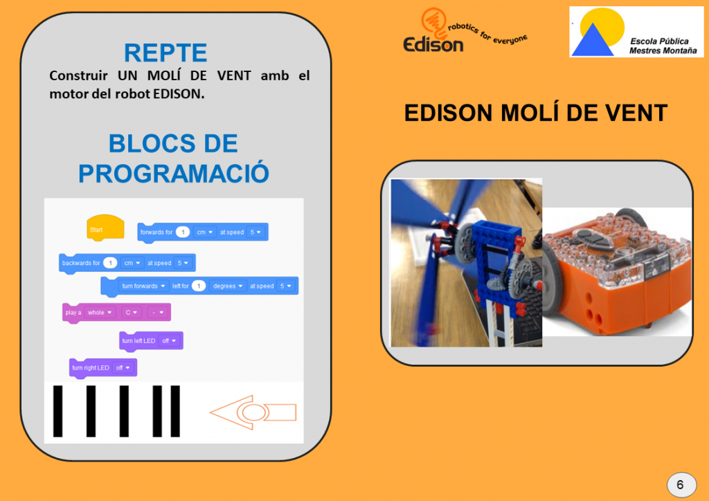 Edison és un robot programable dissenyat per ser un recurs pedagògic STEAM complet per treballar el pensament computacional, programació amb codi i robòtica per a alumnat de 4 a 16 anys d’una manera pràctica.