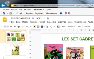 - Conte cooperatiu amb la classe de primer de cicle inicial. Els alumnes de primer que l’any passat ja van treballar aquest conte ens ajudaran a escriure i a buscar imatges per crear el nostre propi conte. Utilitzarem l’ordinador, concretament el GOOGLE PRESENTACIONS per poder treballar conjuntament des de les dues aules.