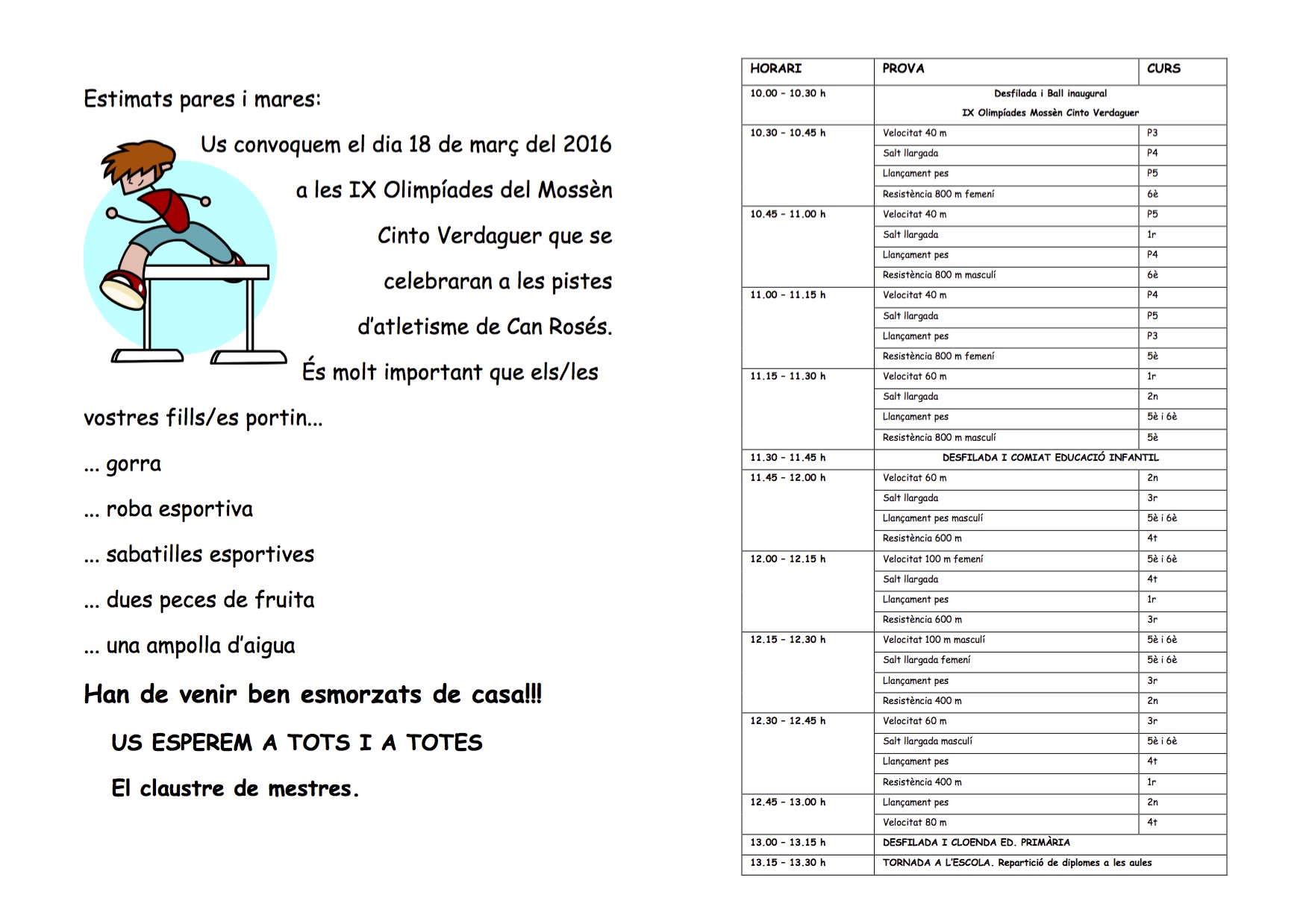 EI5 A i B: DILLUNS 18 D’ABRIL A LES 16:45h.