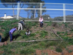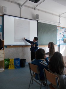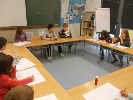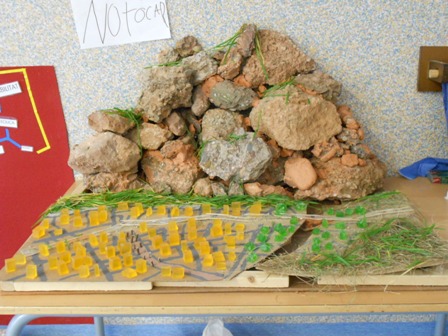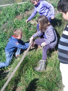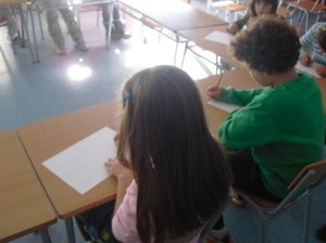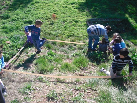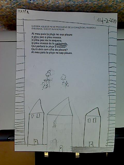 Avui em sortit al bosc i hem agafat una cinta, pals prims i llargs i hem buscat un lloc que fes baixada perquè a Terrassa fa baixada i l’hem marcat amb la cinta i els pals. Després hem anat a la classe i ens hem imaginat que passaria si tiréssim aigua en el quadrat que hem marcat en el bosc, cap a on aniria l’aigua? i que s’emportaria?, … Per això hem anat buscar pals, conglomerats,… per així un altre dia tirar aigua amb galledes i veure que passa.