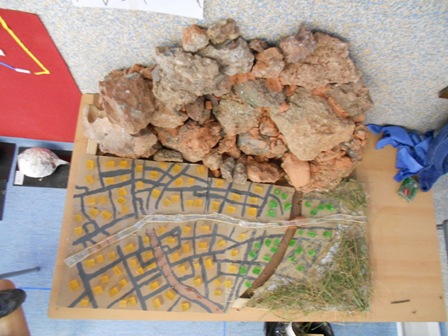 Ho hem fet així perquè si tirem aigua a la maqueta, la maqueta es plana i no fa baixada, i es desfaria el sabó, el cartró, i es faria mal bé la maqueta.