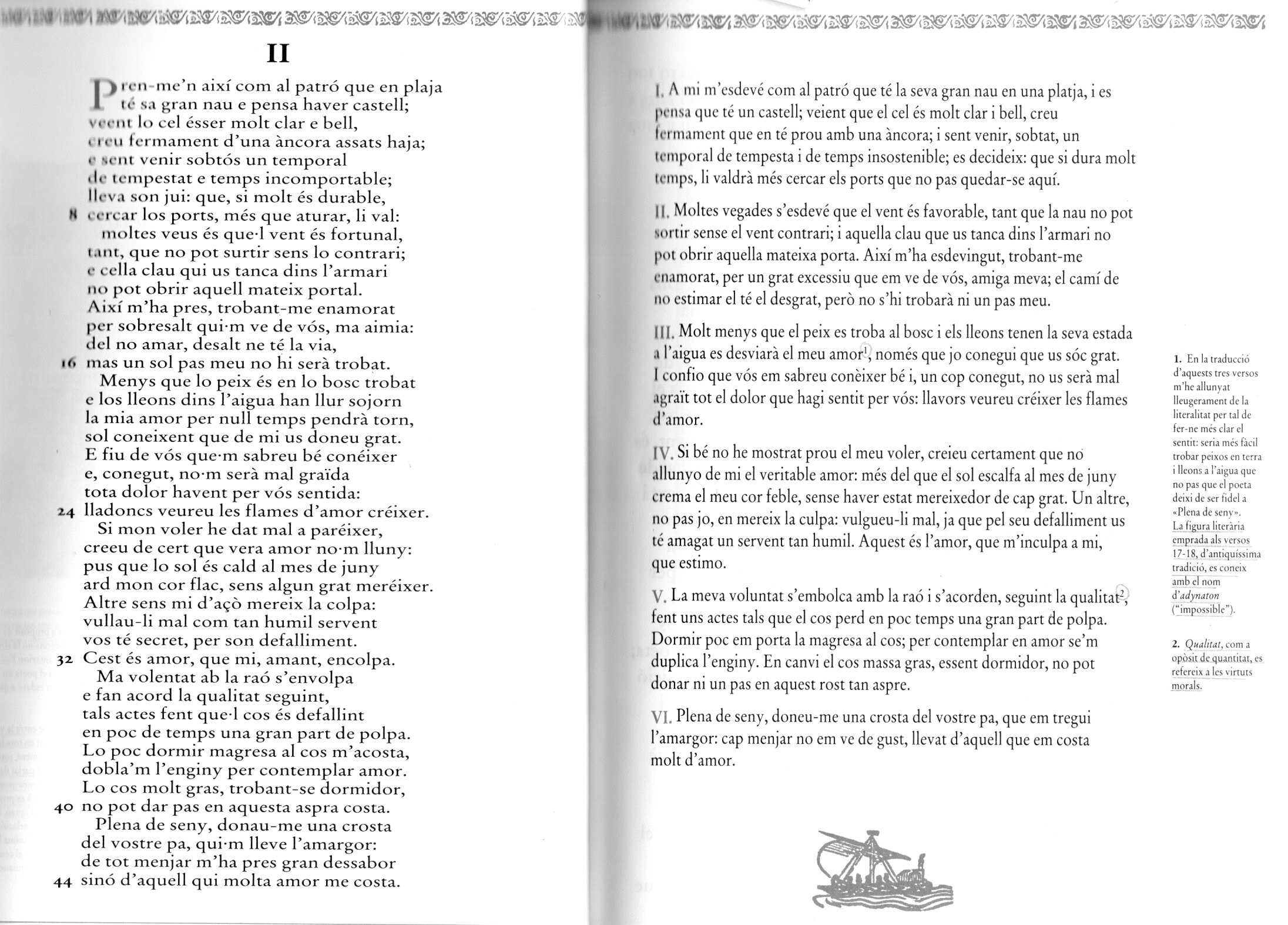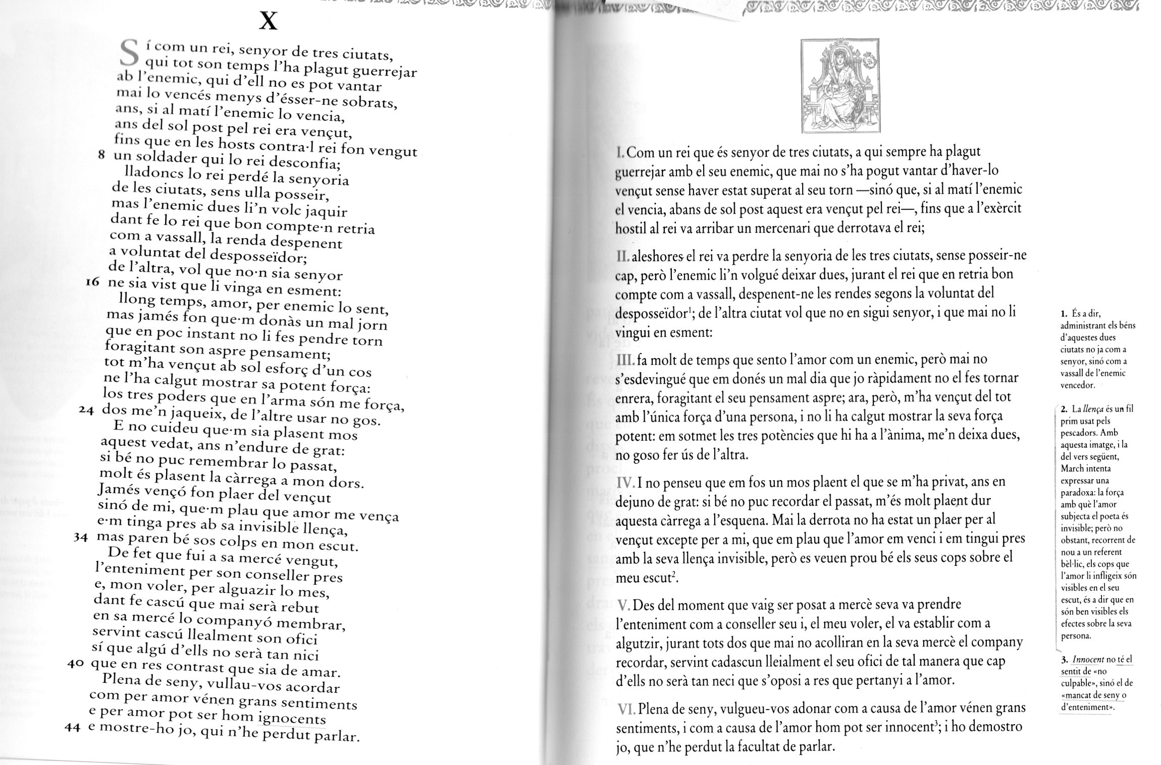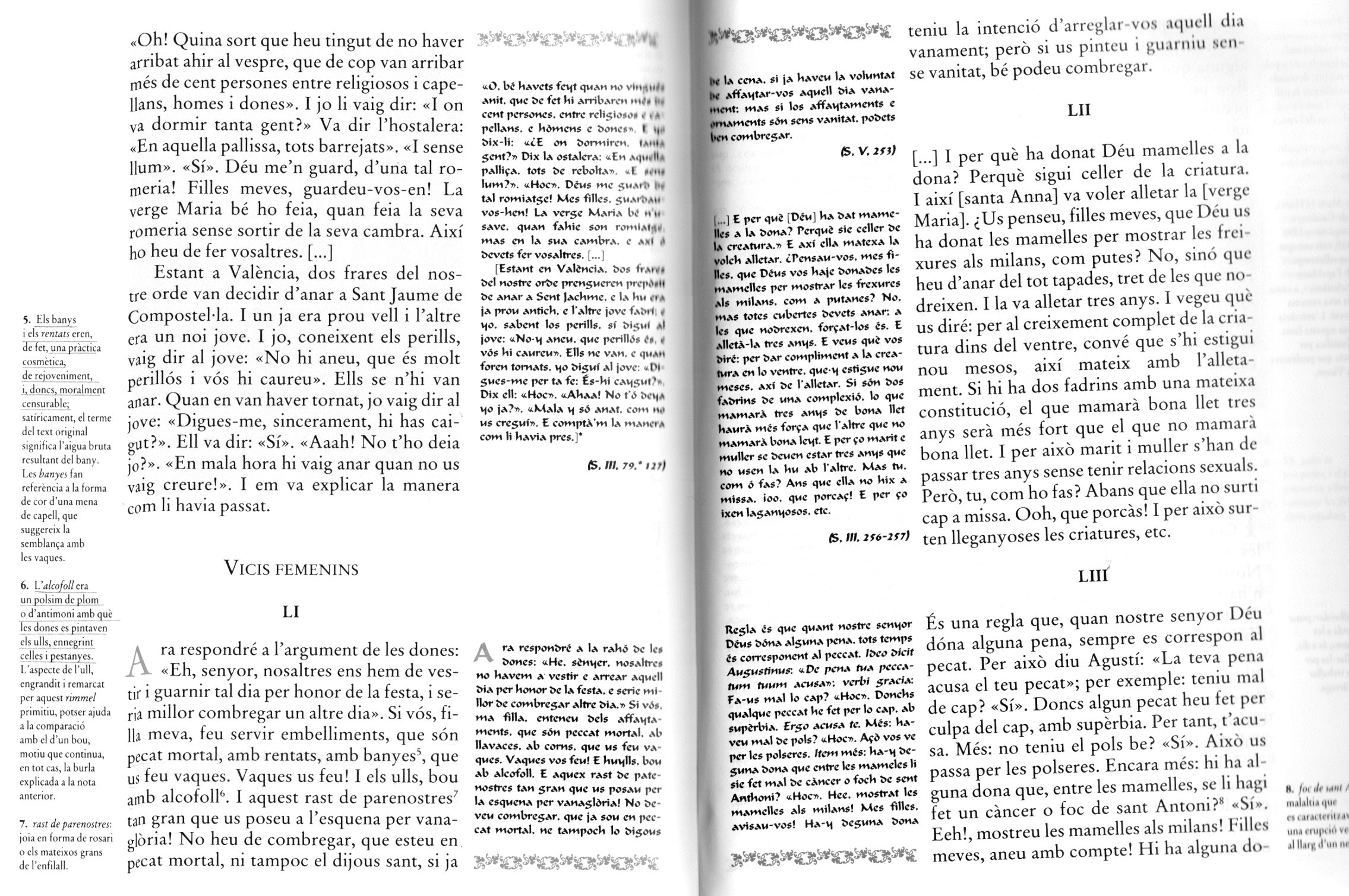 Tingueu present que, a mà esquerra, hi ha la versió original i, a mà dreta, hi ha una adaptació al català actual, amb algunes notes d’aclariment sobre la interpretació o el vocabulari.
