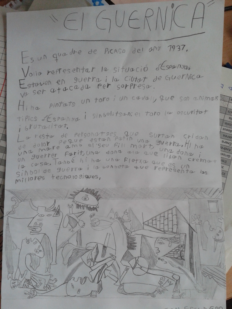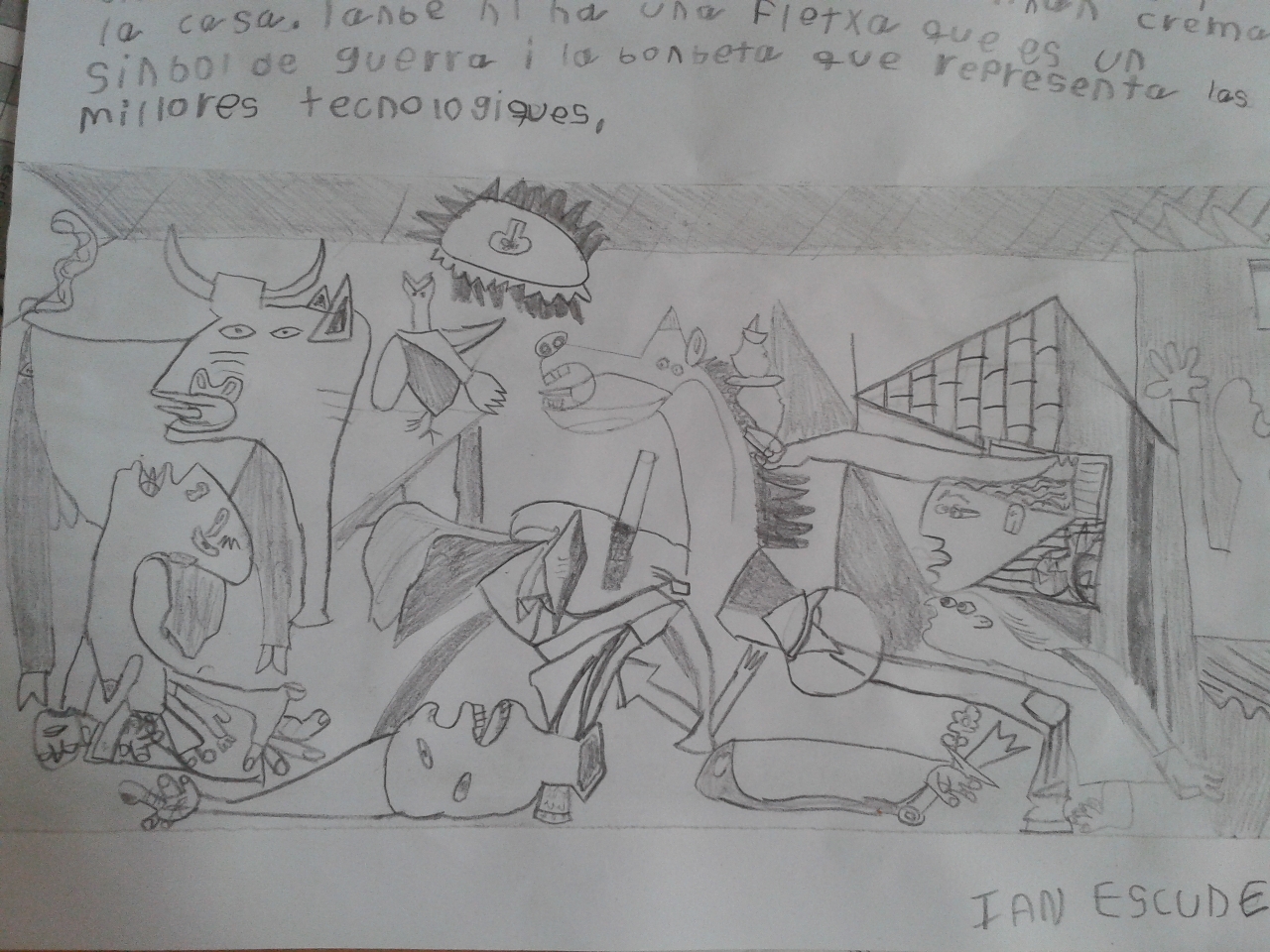Fan uns dies vam estar mirant el vídeo del DIABOLIC del 2006 de la colla de Diables de Martorell (espectacle de foc), en aquest video sortien uns elements força estranys que l’Ian de la nostra classe va voler investigar. Avui ens ha explicat que aquest espectacle feina referència al Guernica i hem esbrinat que simbolitza aquest quadre, també hem descobert que a Espanya va haver una guerra i ara ja sabem que vol dir democràcia i dictadura. Gràcies Ian per la teva feina, ha estat molt interessant.