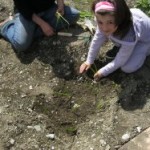Hem pujat a l’hort i hem plantat cebes i enciams. Hem collit raves, els hem amanit i ens els hem menjat.