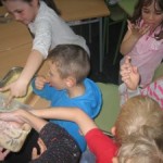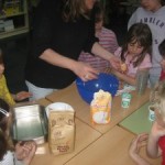 – Passem un DVD ( en Monti és un gra d’arròs que ens explica l’origen de l’arrós, com es conrea, que cal fer-hi abans d’arribar al consumidor, on està dins de la piràmide nutricional, i els avantatges de menjar sa)