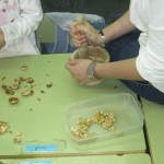 2.Mentre esperem que es desfaci la xocolata trenquem les nous i les posem al fons dels motlles.