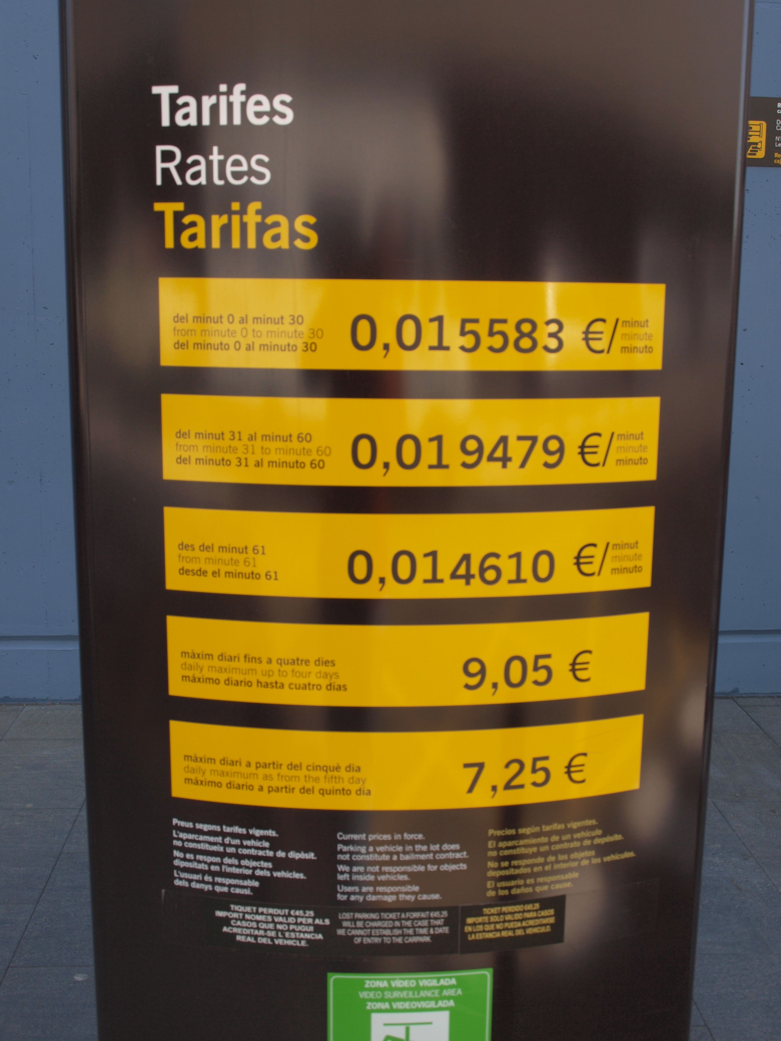 A continuació tens les tarifes del pàrquing de l’aeroport de Girona.