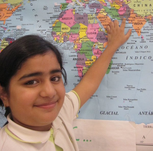 Hola, em dic Sharmeen i sóc alumna de 4t A a l’Escola Màrius Torres. Sóc de Pakistan, vaig arribar a Catalunya fa 2 anys en avió. Tinc 10 anys i m’agrada dibuixar i pintar, nedar a la piscina i jugar a l’ordinador.