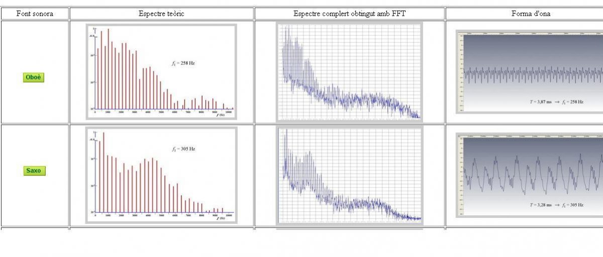 Per començar, veurem com es representa el timbre en una ona sonora. Fixa’t amb les formes de les ones produïdes per diferents instruments i veuràs com van canviant: