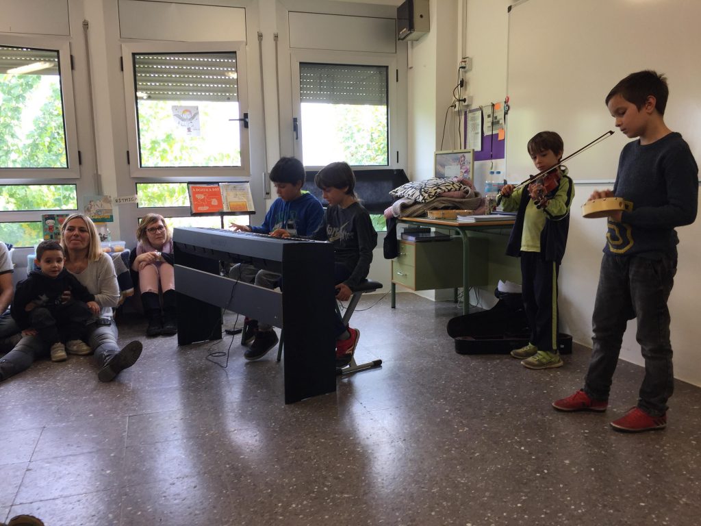 Van poder escoltar alumnes de l’escola que toquen el piano i el violí.