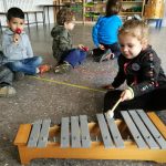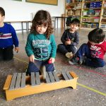 Amb els nens i nenes de P3 hem tocat els metal·lòfons de l’aula per veure el seu so (és com un xilòfon però de metall). Els hem tocat molt fluixet i molt fort i ens ha encantat el seu so tan màgic.