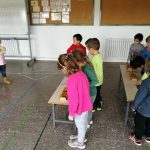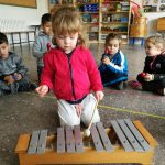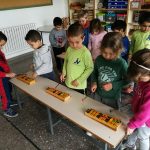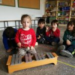 Amb els nens i nenes de P4 hem tocat els carillons de l’aula i hem vist que tenen un so molt bonic (el carilló és com un xilòfon però més petit i de metall i el seu so és molt màgic). Després un nen o nena ens ha fet de director i ens ha anat dient si havíem de tocar fluix, fort o fer silenci i deixar de tocar.