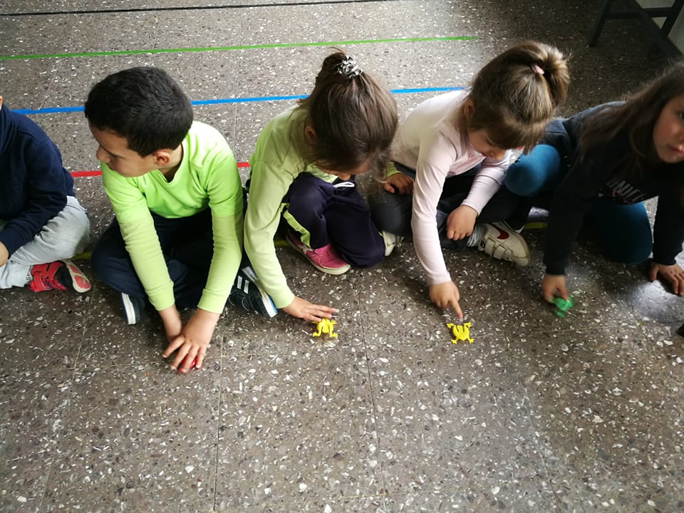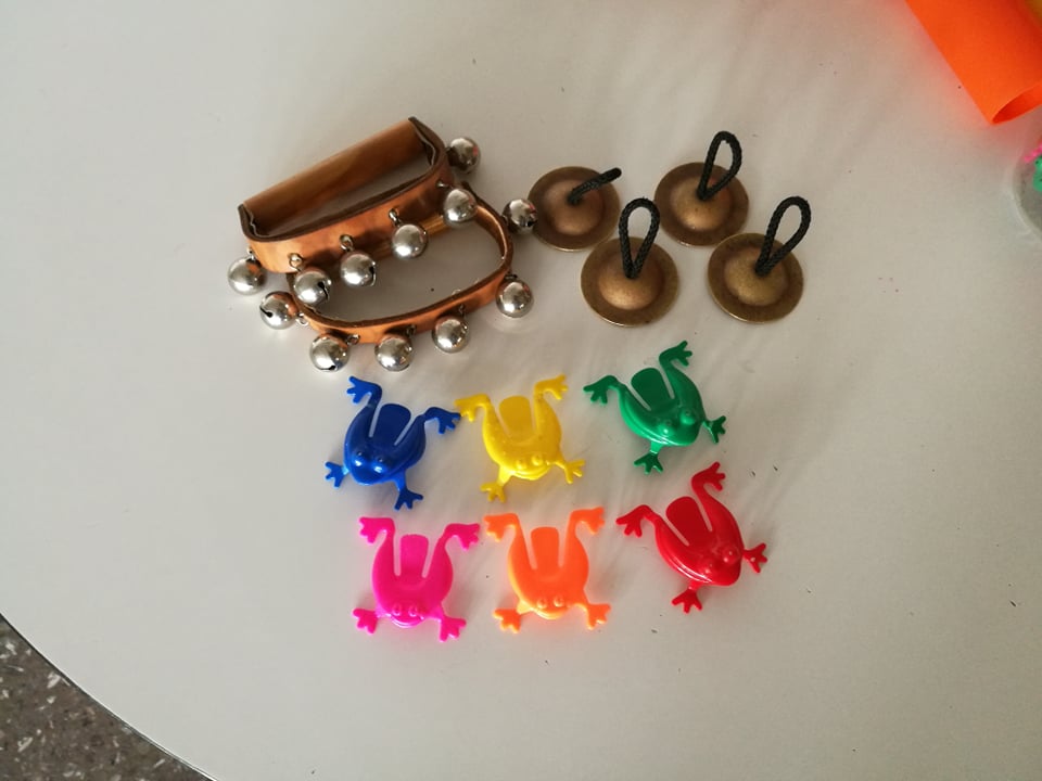 El compàs ternari té 3 temps. Agafem una cançó molt simple com és “Cucu cantaba la rana” i associem a cada temps una cosa: al primer temps fem saltar una granota, al segon temps toquen els cascavells i al tercer temps toquen els plats.