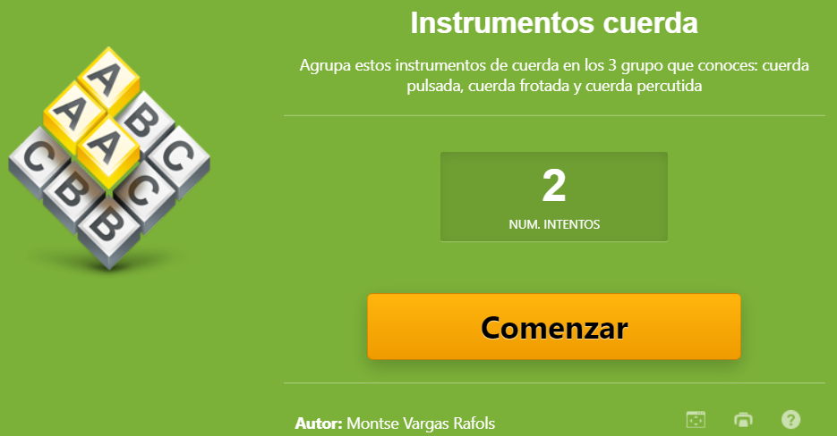 En aquest joc has d’agrupar els instruments en corda fregada, pinçada o percutida. Segur que te’n sortiràs!
