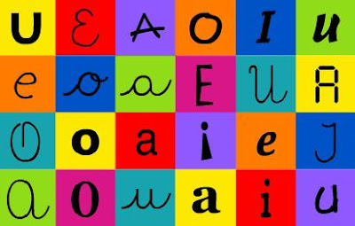 Els nens i nenes de 1r estem cantant una cançó que ens parla de les vocals.