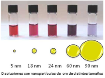 Per exemple, les partícules d’or poden tenir diferents colors quan la seva mida es troba entre un i cent nanòmetres.
