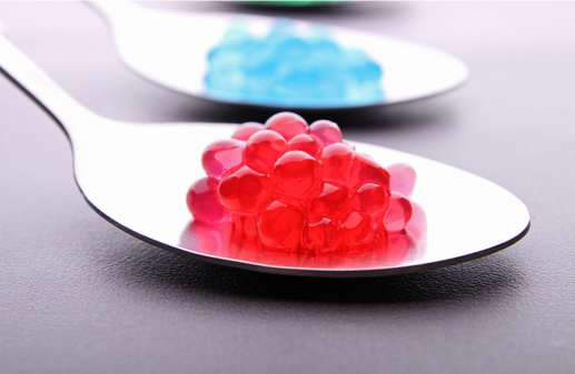 *(L’esferificació consisteix a provocar la reacció de l’alginat amb el calci (ja sigui a través de clorur càlcic, gluconolactat o bé amb aliments amb alt contingut en calci), fet que fa gelificar externament el líquid, i així l’encapsula).