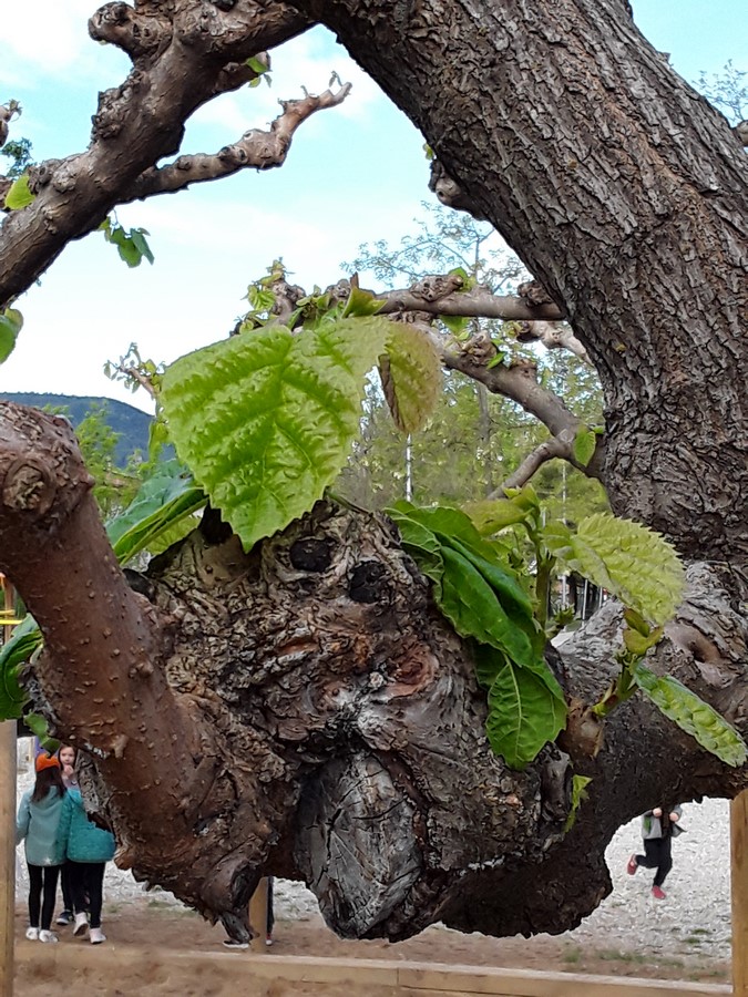 It has a short trunk. The bark is usually grayish brown with flattened ridges and shallow vertical furrows