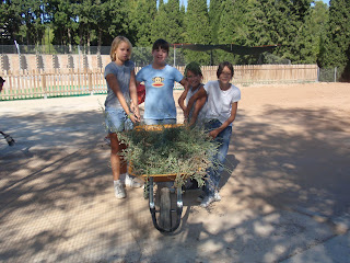 Quan vam arribar a l’hort ens van distribuir les tasques amb grups: uns nens escombraven, uns altres amb la pala aplanaven la terra, uns altres amb el rasclet treien les pedres, també es van treure les males herbes.