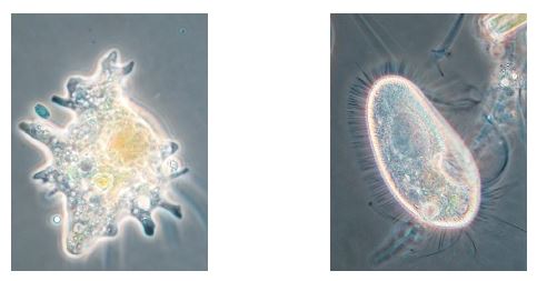 Són una mica més grans que els bacteris de manera que es poden observar bé al microscopi. Tenen formes molt diverses, l’ameba per exemple pot canviar de forma per desplaçar-se i alimentar-se.