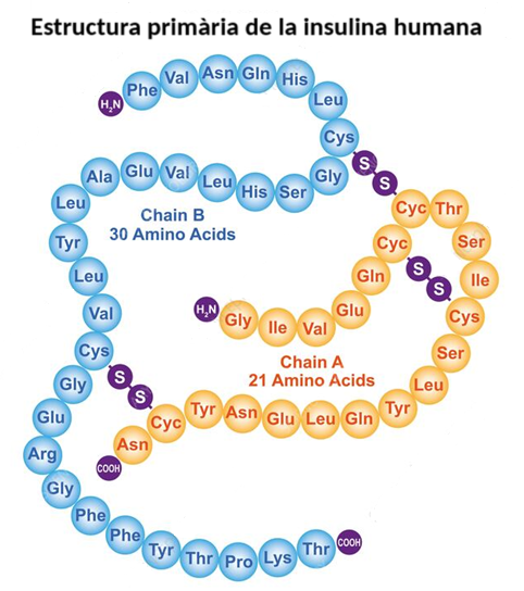 - Especificitat d’espècie. Cada espècie té proteïnes exclusives, però les proteïnes que exerceixen la mateixa funció en diferents espècies solen tenir una composició i estructura similars. A aquestes proteïnes se’ls anomena proteïnes homòlogues, com la insulina, exclusiva de vertebrats, però la cadena A és idèntica a l’espècie humana, el porc, el gos, el conill i el catxalot.