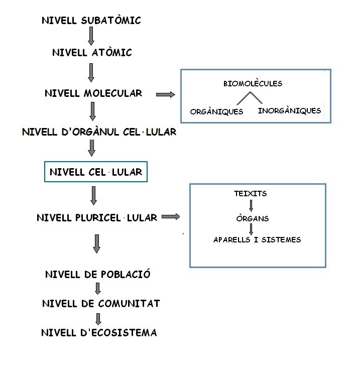 Per a facilitar l’estudi de la matèria viva es diferencien diferents nivells d’organització, que són: