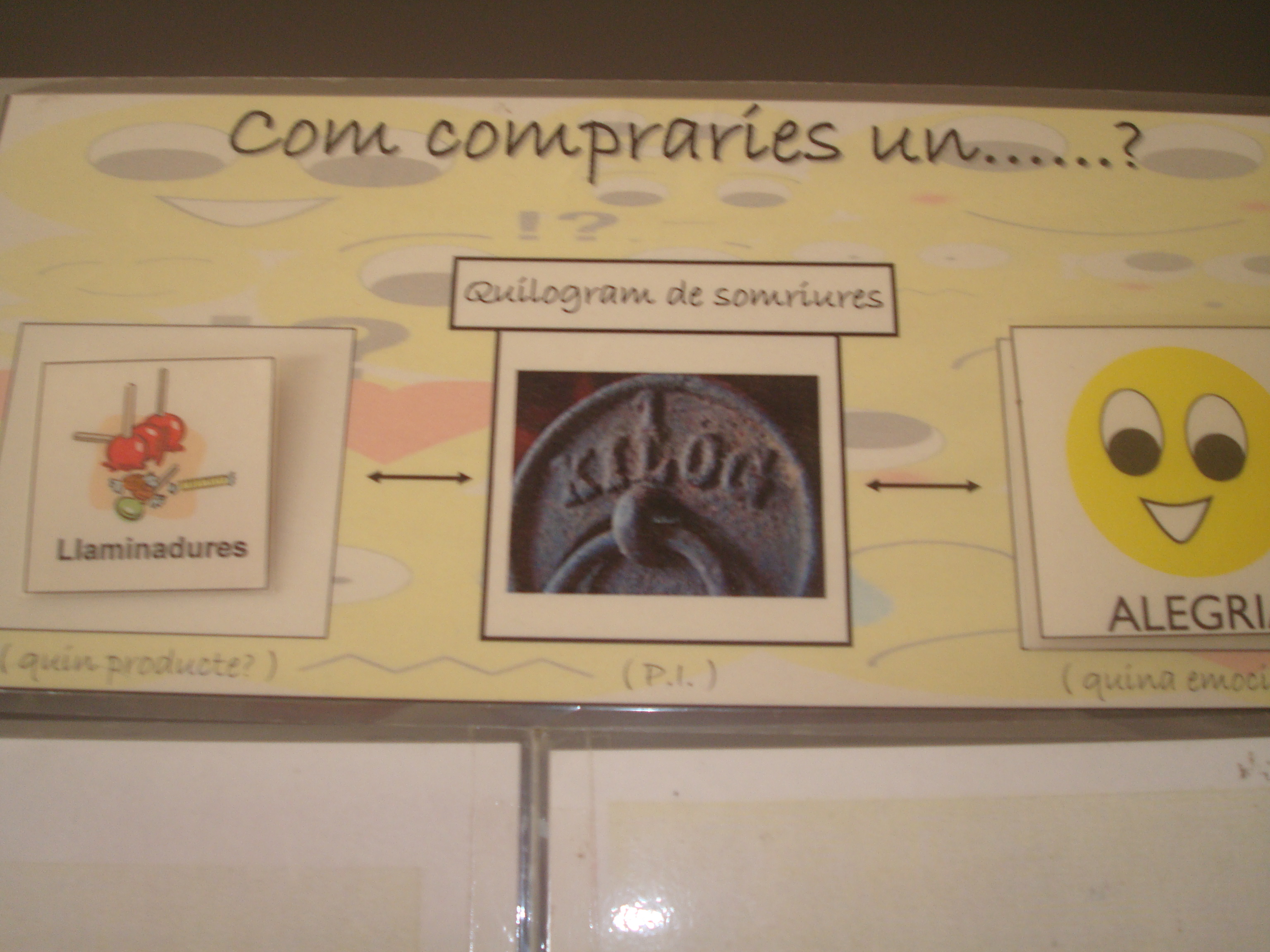 El passat dia 19 de març, dues monitores van acostar-se a l’escola i concretament, a la nostra classe per presentar-nos un taller relacionat amb els hàbits de consum de la nostra societat. L’R3 és una poetessa visual que va venir per preparar el llibre que dóna títol al taller que vàrem realitzar, “Em compres un somriure”. El llibre tracta sobre els productes que es venen a les diferents botigues, però que la seva autora, l’R3, a l’hora de fer-lo, va venir força desorientada , i per aquest motiu, buscava el nostre ajut.