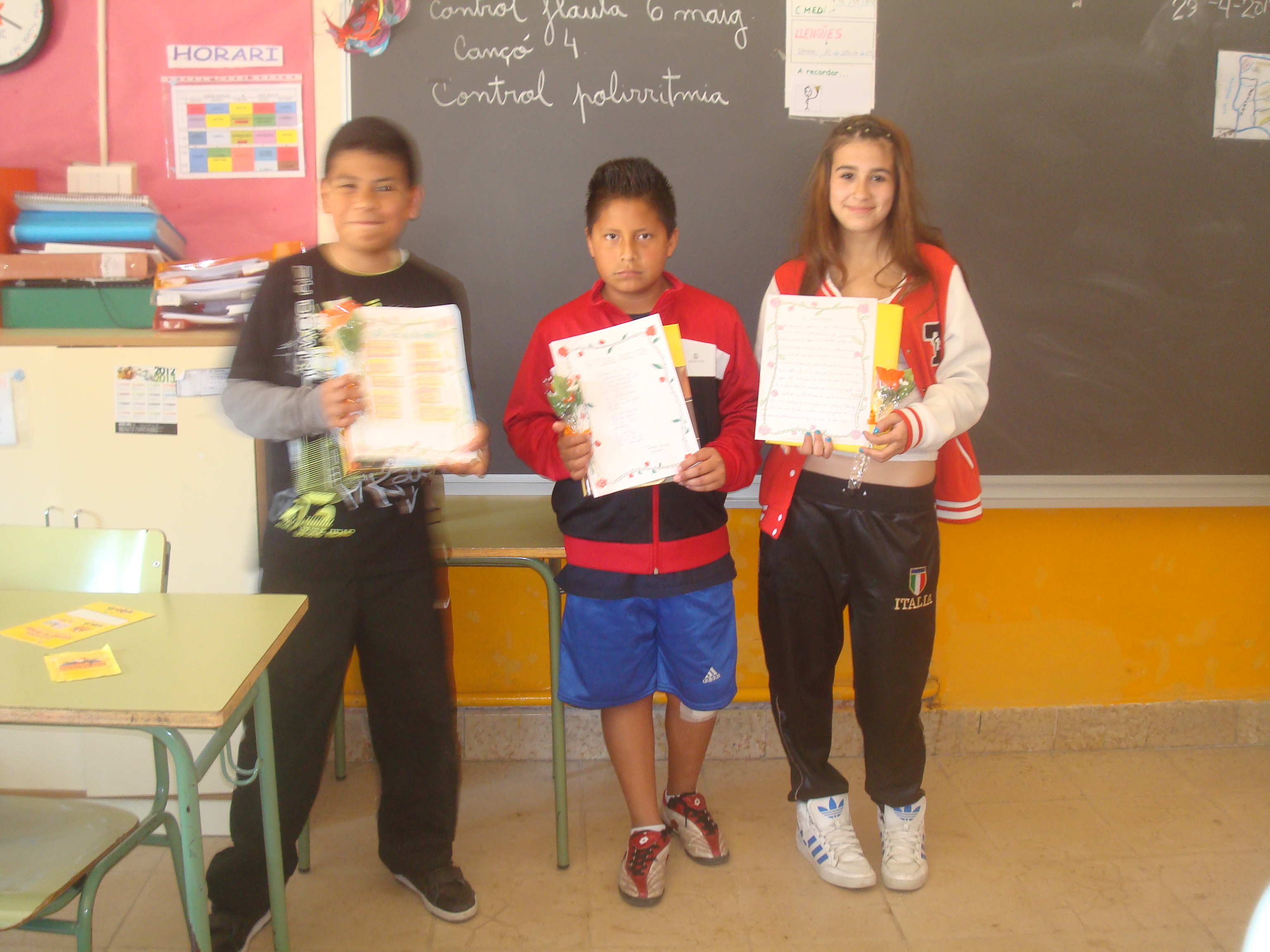 Avui dimarts 23 d’abril, hem celebrat a l’escola la diada de Sant Jordi. Hem fet un volt pels voltants de l’escola per veure les diferents parades de venda de llibres i roses que hi havia i hem participat en un concurs literari. Cal dir, que han estat tres els sel.leccionats per les seves produccions, però TOTS i TOTES HEU ESTAT GUANYADORS i GUANYADORES PER LA VOSTRA IL.LUSIÓ I LA VOSTRA DEDICACIÓ! Felicitats!
