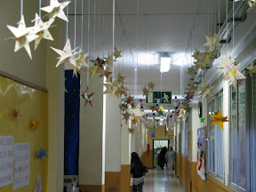 Com que s’acosta el Nadal a l’escola de Begur estem decorant els passadisos, com cada any. Els de cicle inicial han decorat de la següent manera: Han penjat en els suros un pessebre amb la cara dels nens, també han penjat bastons de caramel, però fets de paper i han penjat arbres del sostre.