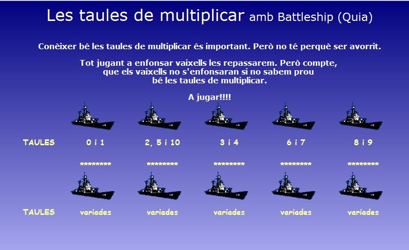 Les taules de multiplicar. Practiquem les taules del: 2, 3, 4, 5, 6, 7, 8 i 9. Multipliquem!