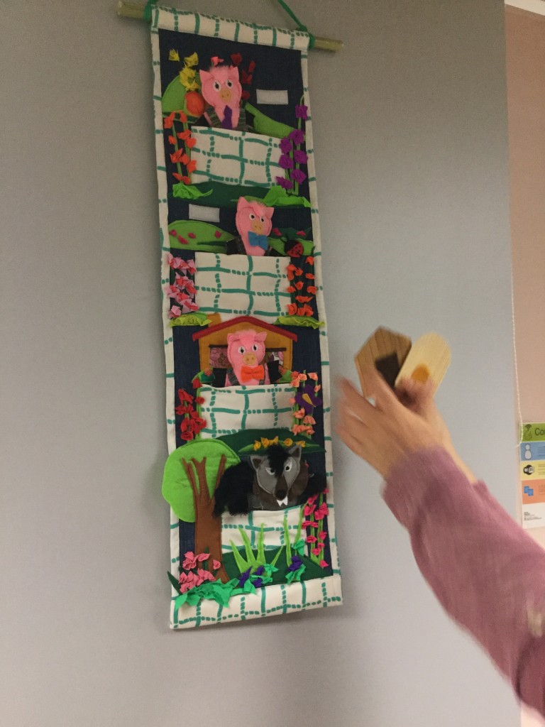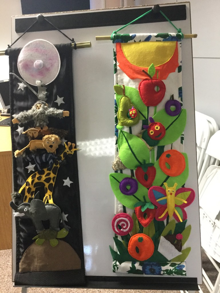 Els contes, fets de roba de tots colors, es poden penjar, els personatges es poden treure i posar en els diferents espais, i se’ls pot afegir un pal de fusta a sota del vestit per convertir-los en titelles.