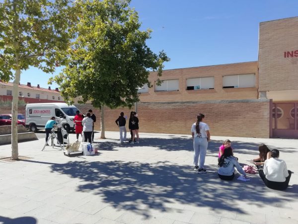 Les professores de biologia i geologia de 4t (Laia, Anna i Maria) han coordinat una observació solar pels seus grups. Han estat tres dilluns, entre les 14 i les 15 h (LT) i han passat uns 45 alumnes.