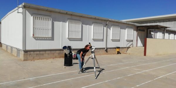El dia 30 vam comptar amb la presència de Jorgina, una noia de 1r d’ESO que el dimarts observava la lluna a Alcarràs a la mateixa hora que José Manuel observava el cometa a Aspa.