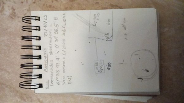 Llibreta de Ariana (1r ESO). Localització i observació del cometa C/2025 A6 (Lemmon).
