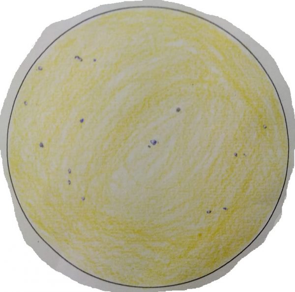 El primer dia va ser el 22 de setembre, just a les 12 h UT. A més de l’observació solar amb el telescopi Alumnes f5 8″ (amb filtre) i Coronado (Halfa), hem pogut parlar de l’equinocci de tardor i altres aspectes dels moviments terrestres (i del sol al cel).