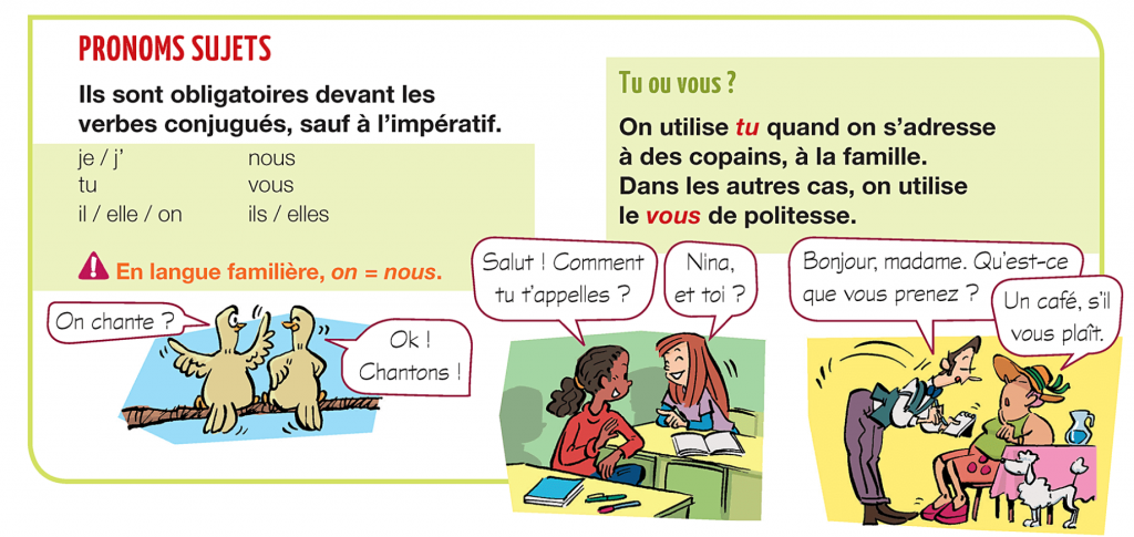 AUDIOS: --> audio1: pronoms personnels singuliers --> audio: pronoms personnels pluriels --> audio: practique les pronoms personnels