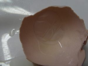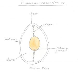 Hem obert un ou “no fecundat” per observar-lo per dins i poder veure els components de l’ou. Hem descobert que hi ha uns filaments anomenats calaza, la seva funció és aguantar el rovell. Al trencar-lo hem pogut veure la cambra d’aire.