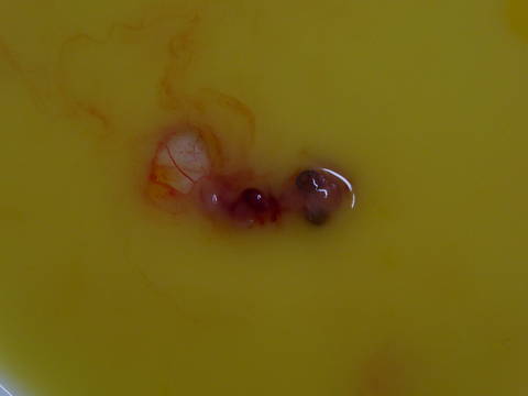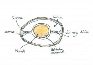 Ahir vam obrir dos ous, un del supermercat i l’altre de la incubadora. En obrir l’ou del supermercat vam poder observar que era un ou amb el rovell, la cambra d’aire, la clara…