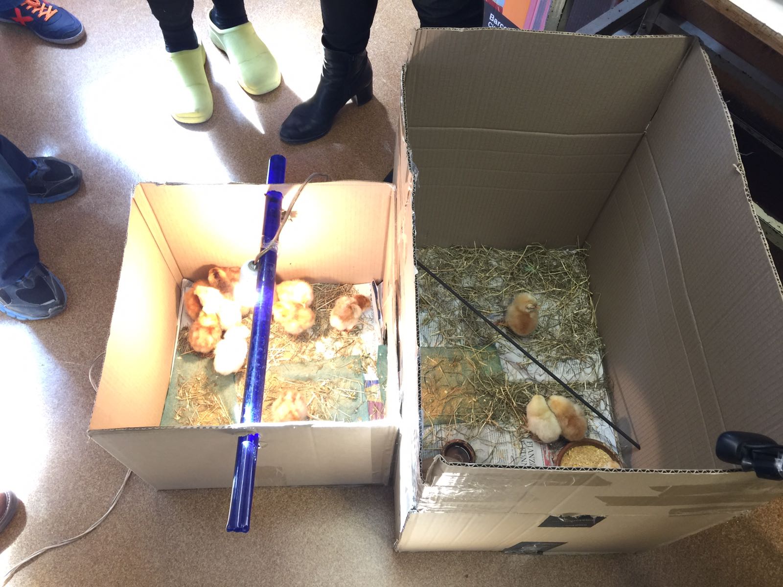 - A les famílies que acullen els pollets a casa, fins que no retornin al galliner.