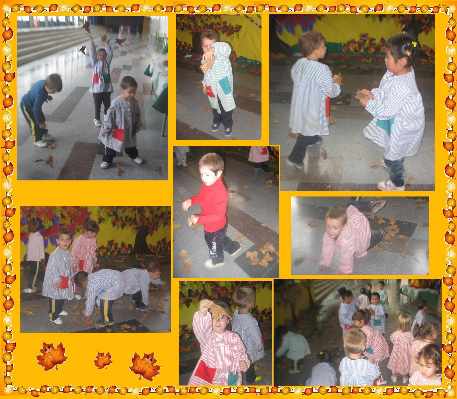 Hem anat recollint fulles seques que han caigut dels arbres i hem jugat a estirar-nos, a tirar-les, a trepitjar-les… què divertit!!