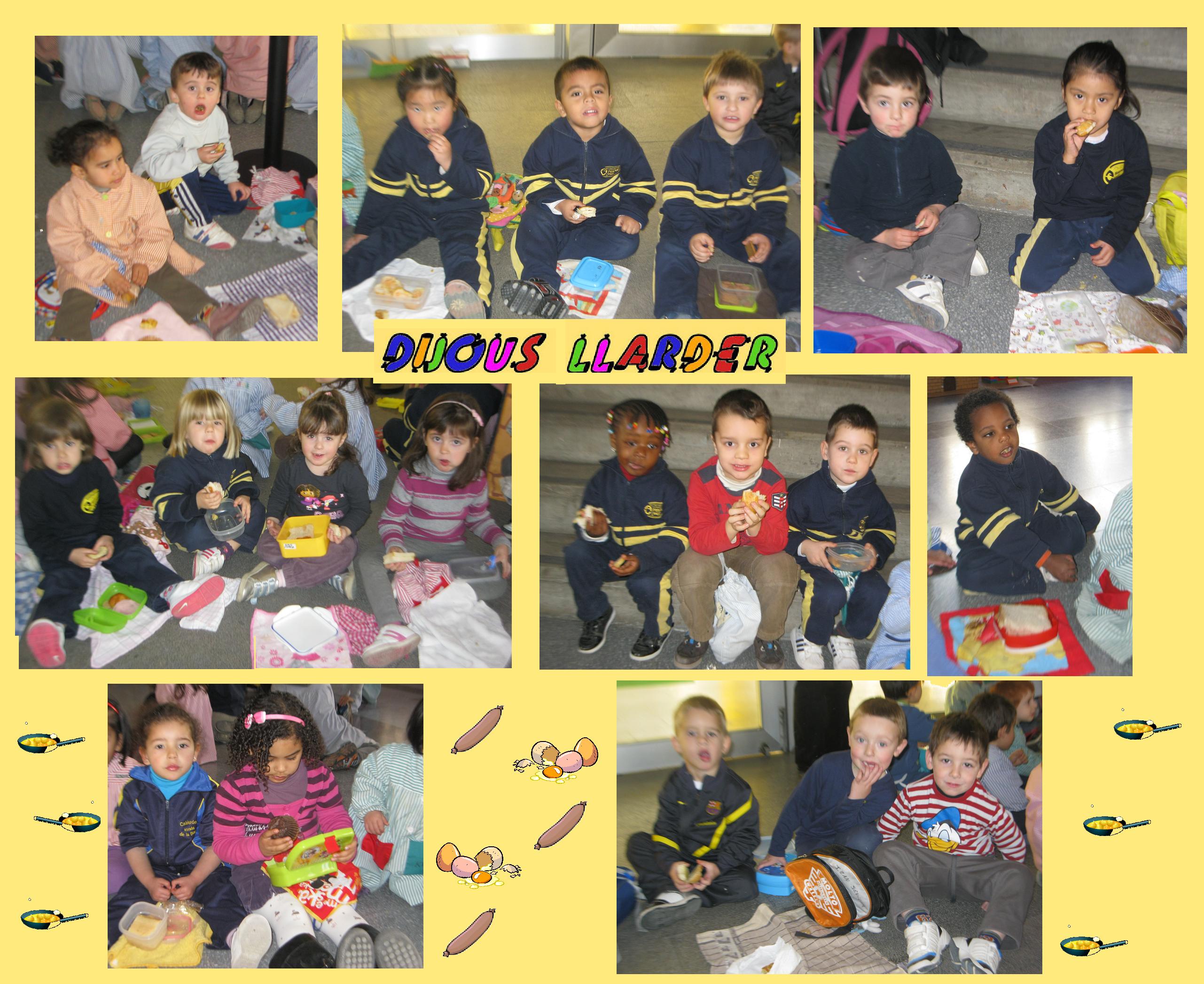 AVUI 16 DE FEBRER ÉS DIJOUS LLARDER DIA DE MENJAR BOTIFARRA D’OU, COCA DE LLARDONS I TRUITA. AIXÍ QUE L’ARIÀ, L’IKER I EL BIEL ENS HAN CONVIDAT A ESMORZAR TRUITA DE PATATES. ESTAVEN BONÍSSIMES AIXÍ QUE ENS HEM ATIPAT FORÇA, A MÉS ELS MESTRES ENS HAN DONAT BOTIFARRA D’OU… MMMMMMMMMMM!!