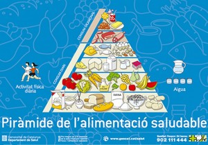 Aquesta setmana comencem un nou centre d’interès sobre l’alimentació saludable. Com que fa molta calor i ja estem molt cansats el treballarem d’una manera totalment pràctica i experimental. Per a això, durant els propers dies tenim previst fer una experimentació amb farina, anar a fer la compra al super per a elaborar diferents esmorzars ben sans i complets, convertir-nos en petits cuiners i cuineres… En fi, ja anireu veient a través del bloc i per descomptat de tot el que us expliquin els vostres petits i petites què treballem. Però per introduir el treball, aquí us deixem la PIRÀMIDE DE L’ALIMENTACIÓ SALUDABLE!!