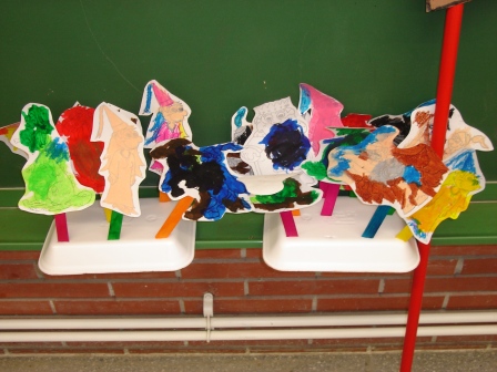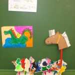 Després, hem visitat l’exposició de treballs manuals i literaris fets pels companys i companyes de tota l’escola. Hi havia molts i molt macos!! Roses, titelles, dracs amb volum, històries…