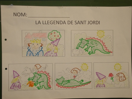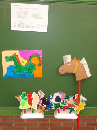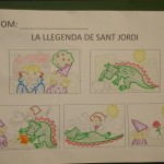 A la classe, hem explicat la “Llegenda de Sant Jordi” i també hem fet activitats amb la PDi i a l’ordinador.