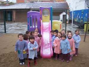 I quan vam acabar amb el groc, vam fer la festa del groc, amb un berenar de color groc i aprofitant que feia un sol molt groc, vam sortir al pati a fer jocs vestits de groc.