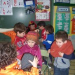 La Merçé la mare de la Núria, ens ha portat una maleta plena de bufandes, gorros, guants , mitjons i mantetes. Ens ha anat molt bé per treballar l’hivern. Avui l’hem obert i ens ho hem emprobat tot, que divertit que ha estat, ara la deixarem al racó de l’hivern, per poder-hi seguir jugant el que duri l’hivern.