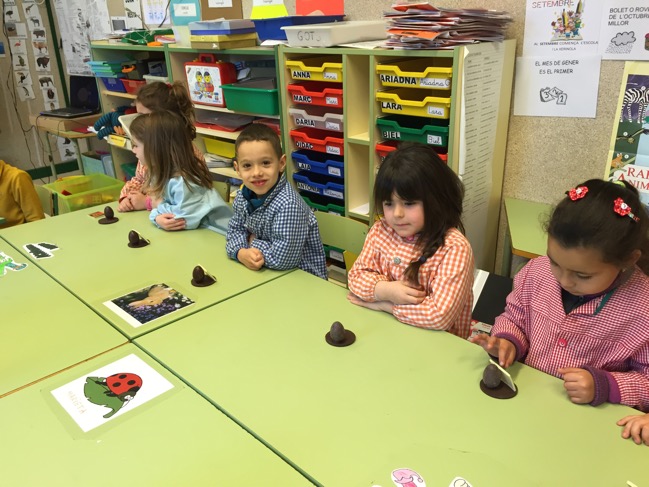 Avui hem treballat amb els bee-bots. Hem explicat un conte i havien de seguir les escenes donant-li les ordres al bee-bot.