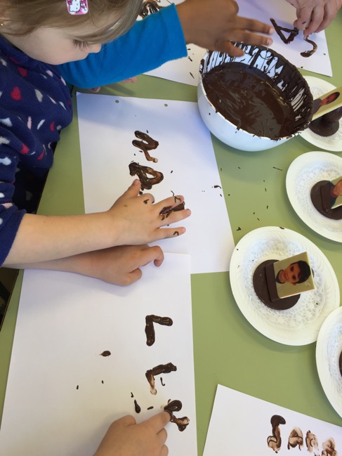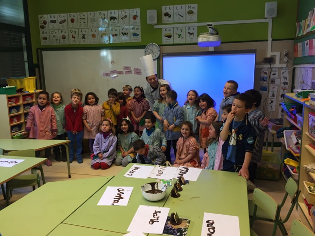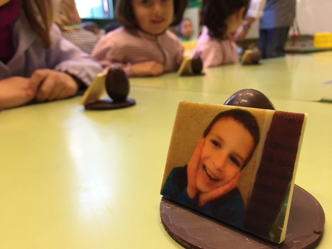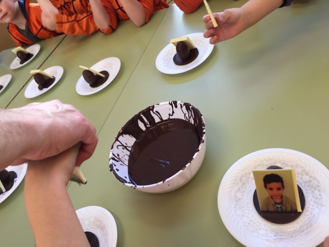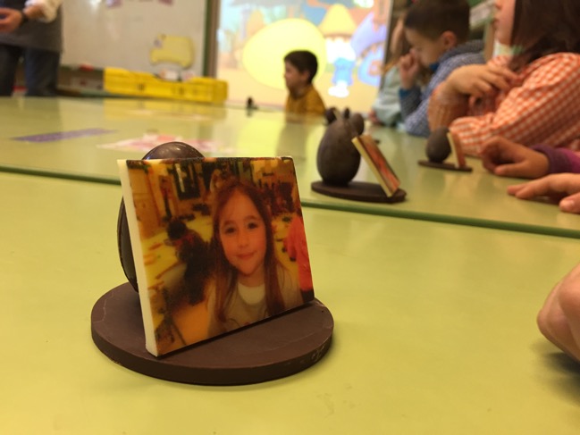 Avui divendres, últim dia del segon trimestre, ens ha visitat en Francesc mestre xocolater de la Gelateria Núria d’aquí Malgrat. Ens ha imprès amb xocolata una fotografia nostra!!! Amb xocolata desfeta l’hem enganxada en un ou i després, l’hem embolicat perquè quedés ben maca! També hem escrit el nostre nom sucant el dit amb xocolata! ☺️
